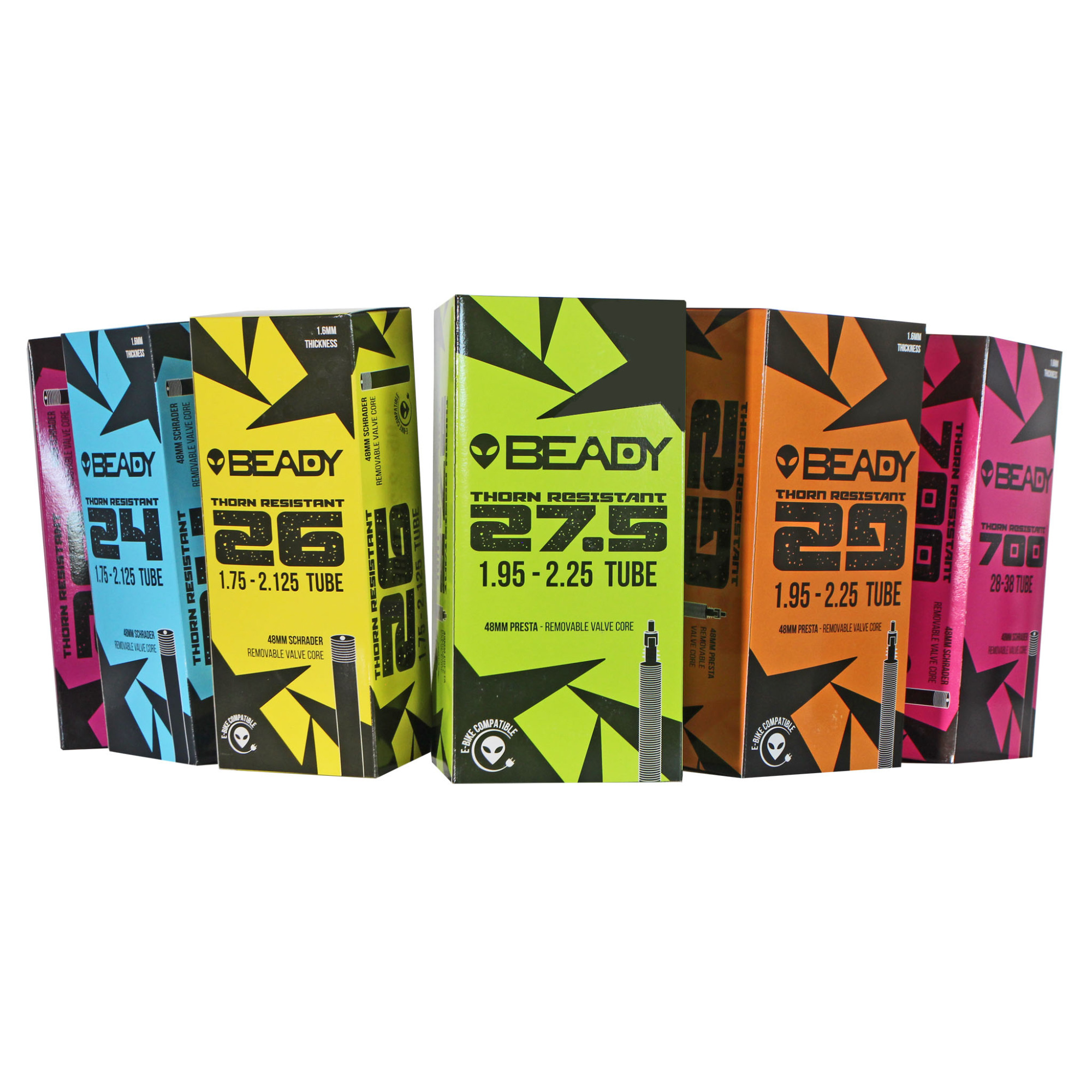 Designed the packaging for an entire line of bicycle tubes with the needs of bicycle shop employees in mind. These are color coded for easy size identification in a busy bike shop.