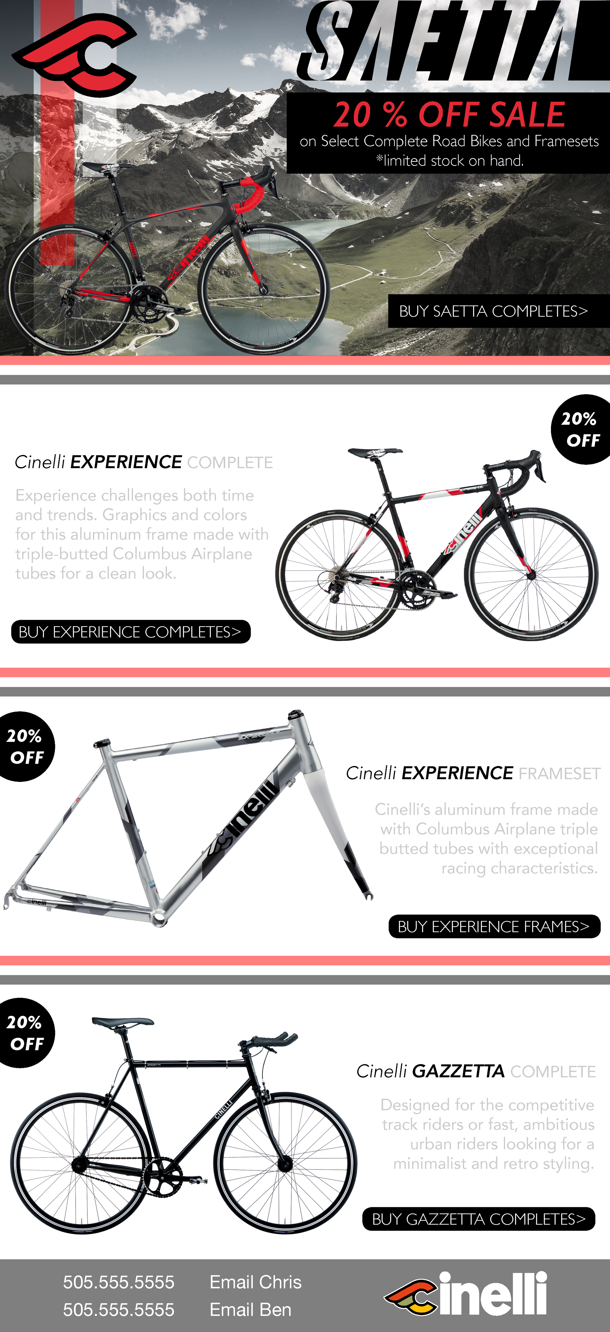 One of the many e-blasts focused on the US branch of Cinelli bicycle components and their Road/Track frames and complete bicycles.